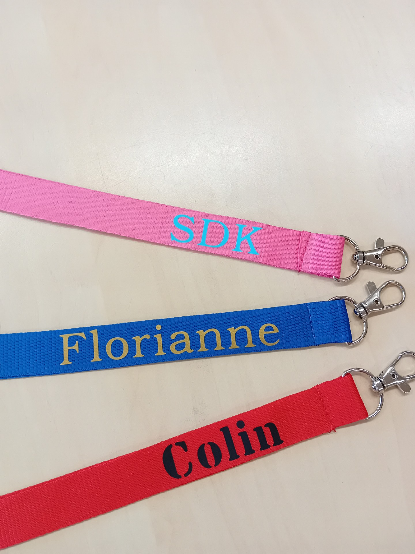 Elke keycord in onze collectie is met zorg en creativiteit gemaakt door leerlingen. Dit maakt elk exemplaar niet alleen praktisch, maar ook persoonlijk en bijzonder. Kies uit verschillende kleuren banden, combineer met tekst in diverse kleuren en lettertypes, en stel zo jouw perfecte keycord samen.